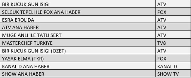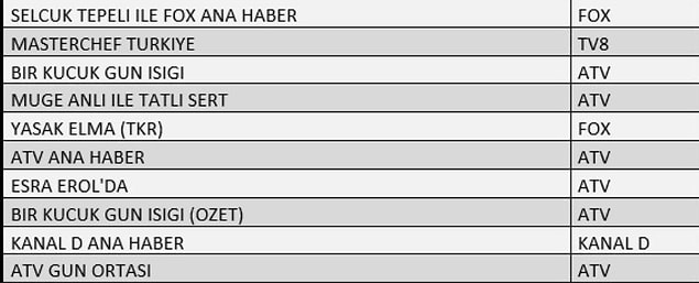 TOTAL BİRİNCİ 10 PROGRAM