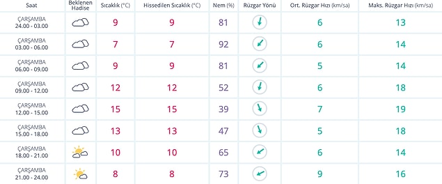 Meteoroloji Genel Müdürlüğü tarafından yapılan son değerlendirmelere nazaran: Ülkemiz genelinin modüllü ve çok bulutlu, Doğu Akdeniz, İç Anadolu’nun doğusu, Orta ve Doğu Karadeniz (Çorum hariç), Doğu Anadolu’nun kuzey ve batısı, Güneydoğu Anadolu’nun batısı ile Çankırı, Kırıkkale, Kırşehir, Aksaray, Sinop ve Van etraflarının yağışlı, başka yerlerin az bulutlu ve açık geçeceği kestirim ediliyor. Yağışların, çoklukla yağmur ve sağanak, Doğu Karadeniz’in iç kısımlarının yüksekleri ile Doğu Anadolu’nun kuzey ve doğusunun yükseklerinde karla karışık yağmur ve yer yer kar halinde görülmesi bekleniyor. Gece ve sabah saatlerinde Marmara, İç Ege ve Batı Karadeniz’in iç kısımlarında pus ve yer yer sis bekleniyor.