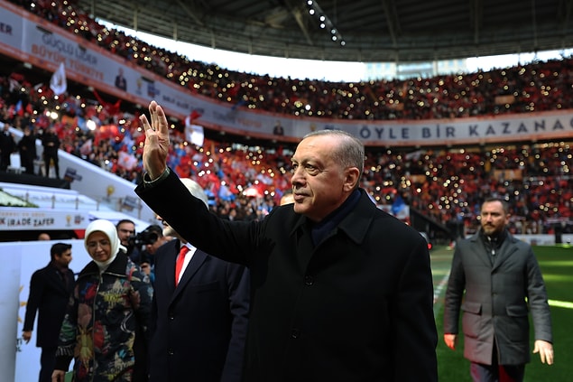 ‘İnsanlarımızı karamsarlık çukurunda boğmak için uğraşan, bu uğurda finanstan teröre, her aracı kullanan global baronlara, emperyalist çetelere eyvallah etmeyeceğiz. İnancımızdan, medeniyetimizden, tarihimizden, hepsinden kıymetlisi milletimizden aldığımız güçle bu imtihanı da muvaffakiyetle tamamlayacağız. Bu maksada ulaşmak için Cumhur İttifakı çatısı altında gece gündüz çalışacağız. İnsanlarımızı karamsarlık çukurunda boğmak için uğraşan finanstan teröre her aracı kullanan global baronlara emperyalist çetelere eyvallah etmeyeceğiz. Milletimizden aldığımız güçle bu imtihanı da muvaffakiyetle tamamlayacağız. İnşallah bu oyunu da bozacağız. Bu gayeye ulaşmak için Cumhur İttifakı çatısı altında gece gündüz çalışacağız.’