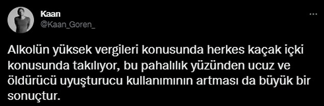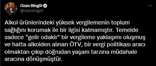 Alkol eserlerindeki yüksek vergilemenin toplum sıhhatini korumak ile bir ilgisi kalmamıştır. Temelde yalnızca “gelir odaklı” bir vergileme yaklaşımı oluşmuş ve hatta alkolden alınan ÖTV, bir vergi siyaseti aracı olmaktan çıkıp direkt hayat biçimine müdahale aracına dönüşmüştür.