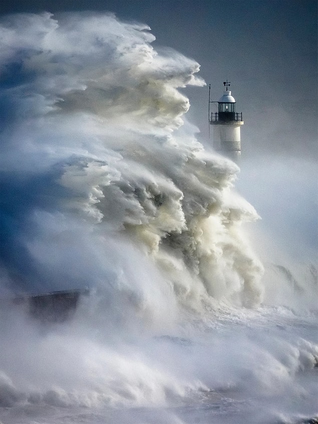 18 Şubat 2022 tarihli bu imgede, Eunice Fırtınası sırasında Newhaven’da denizden devasa dalgalar yükseliyor. İngiltere’nin güney kıyıları, devasa fırtına nedeniyle birinci kere kırmızı hava ikazını almıştı. Birkaç kişi düşen ağaçların altında öldü ve rüzgarlar Wight Adası’nda saatte 197 km suratlara ulaştı.
