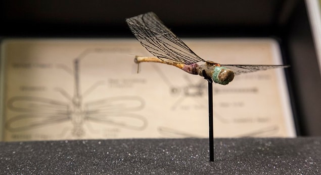 Drone mantığıyla çalışan bu robot sinek, ‘insectothopter’ ismiyle biliniyordu. Kanatlarını çırparak hareket eden ve dışarıdan bakıldığında gerçek bir sinekten ayırt edilemeyen bu robot, rüzgarlı havalarda denetim edilemediği için prototip evresinde kaldı. Robot sineğin 70’li yıllarda CIA için üretilen prototipi de müzede sergilenen eserler ortasında.