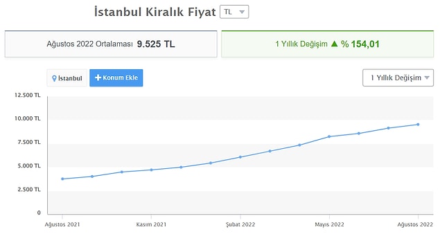 2006 yılında TÜİK’e nazaran Türkiye’de kira 327 lira olarak görülüyor. Yani maaşının yaklaşık 5’te biri oluyor. TÜİK Nisan 2022’den bu yana bizimle bu bilgiyi paylaşmak istemediği için 9.525 lira olarak görülen kiraya oranla da 43 bin 692 liralık bir maaş gerektiriyor.