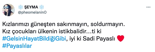 “Sizin evlatlarınız, bizim de evlatlarımız. Sizin kızlarınız, bizim de kızlarımız, bu ülkenin kızları, aydınlık yüzümüz, gücümüz, en nadide çiçeklerimiz… Siz diyorsunuz ki güneşten sakınalım, çiçek solar. Hepimiz anne ve babalarımızı geçtik. Müsaade verin kızlarınız da sizi geçsin” diyen Payaslı’nın konuşması kısa müddette toplumsal medyadan takdir topladı.