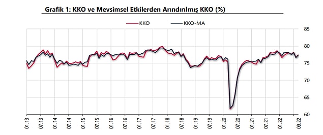 Türkiye Cumhuriyet Merkez Bankası(TCMB) tarafından yapılan açıklamaya nazaran, Mevsimsel tesirlerden arındırılmış kapasite kullanım oranı (KKO-MA), bir evvelki aya nazaran 0,7 puan artarak yüzde 77,3 düzeyinde gerçekleşti.