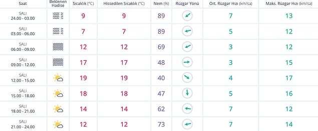 11 Ekim Salı İzmir Hava Durumu