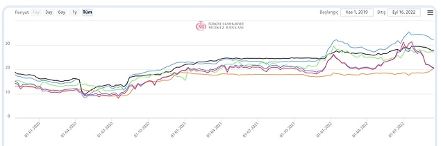 En yüksek oran muhtaçlık kredilerinde olurken, KMH (kredili mevduat hesabı/ek hesap da denilen bankacılık ürünü) ile oran bir ölçü düşüyor. Taşıt kredisi, gereksinim kredilerini takip ederken, 2 aylık süreçte ticari kredilerin yüzde 30’un üzerinden 20’ler geldiği görülüyor.