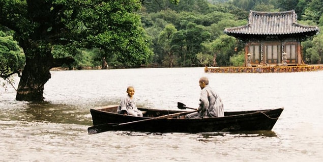 Özet: Tabiatın bütün hoşluklarını bir ortada toplayan bir gölün ortasına kurulmuş yüzen bir mesken, yaşlı bir rahip ve yanında ona eşlik eden küçük rahip adayı. Yaşlı rahip, çocuğa nasıl rahip olunacağını bilgelikle adoğal bir akış içinde öğretir. Bu sırada ise yıllar, mevsimler üzere geçip gitmeye başlar.