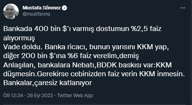 İktisatçı-Yazar Mustafa Sönmez de duyumlarını paylaşırken, bankaların dövizden KKM’ye kısmen de olsa geçenlerin kalan dövizlerine daha yüksek mevduat faizi verdiğini tez etti.