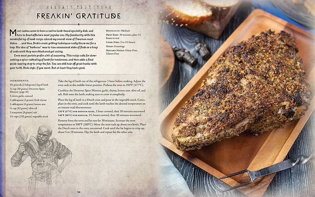 Basit atıştırmalıklardan ilahların ziyafetlerine layık ana yemeklere kadar pek çok tanımın yer aldığı lisanslı kitabın fiyatı ise 39.99 dolar.