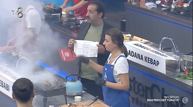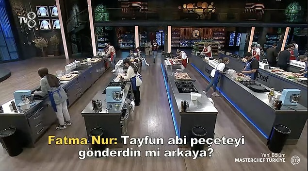 Elden ele geriye yanlışsız katlı peçete, Atiye’ye vardıktan sonra yarışmacıların durumunu denetim etmek için tezgahlar ortasında dolaşan Mehmet Şef tarafından fark edildi.
