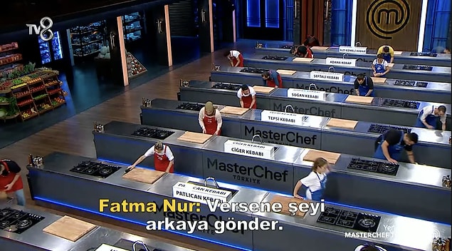 Birbirinden lezzetli kebapları yapmak için şeflerin verdiği 45 dakikanın başlamasıyla birlikte Fatma Işık, Tayfun’a Atike’ye göndermesi için tanım yazılı bir peçete verdi.
