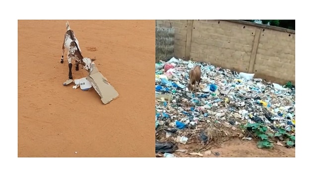 Hayvanlar karton ve çöp poşeti yiyormuş.
