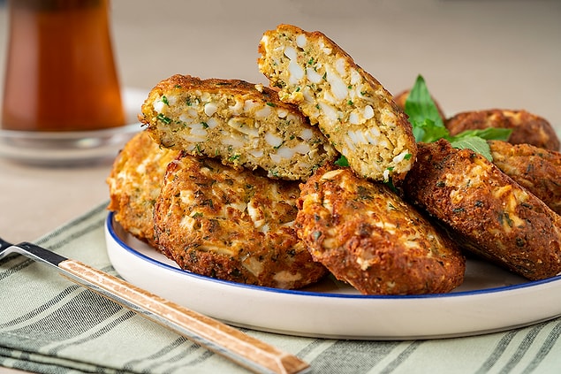 3. Harçtan büyük kesimler alıp elinizle yassı ve yuvarlak köfteler hazırlayın.