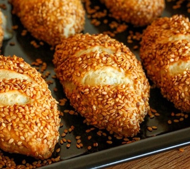 5. Yanları oval biçiminde olacak, üstleri ise sivri. Daha sonrasında suya ve susama batıralım ve tepside 45 dakika dinlendirip evvelden ısıtılmış 180 derecelik fırında pişirelim.