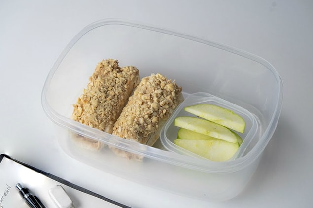 5. Elmayı da dilediğiniz formda dilimlerin ve yemek kabınızın farklı bir bölmesine koyun.