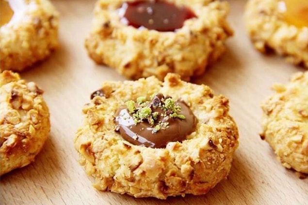 9. Pişen kurabiyeleri fırından çıkardıktan sonra içlerine benmari adabı erittiğiniz çikolatayı ya da reçeli sürüp servis edin.