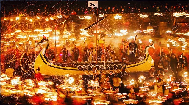 Her yıl Ocak ayının son Salı gününde İskoçya’nın en kuzeyindeki Shetland Adaları’nda bulunan Lerwick kenti,kökenleri Viking’lere uzanan tarihini büyük bir ateş şenliği ile kutluyor. Vikinglerin özgürlük anlayışını temel alarak ortaya koydukları kültür pek çok alanına yansıtıyor ve kuşaklardır süren olumsuz Viking anlayışını sona erdirmek istiyorlar. Bu berbat etiketi yok etmek için çeşitli ülkelerde, çeşitli tertipler da düzenleniyor.