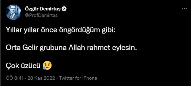 Özgür Demirtaş: “Orta Gelir Kümesine Allah Rahmet Eylesin”