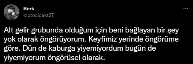 Tüm bu biçim dinamikler temel gereksinimlerde yükselişe neden olunca geliri sabit olan kesim bundan etkileniyor ve Özgür Demirtaş’ın bu 👇 paylaşımına neden oluyor