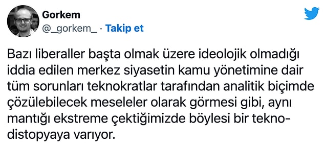 Ve biz siyasetçilerden kurtulacağız. Palavralarını, ayrıştırmalarını, Şark kurnazlıklarını, sağcılıklarını, solculuklarını alıp yok olup gidecekler. Huzur gelecek, yazılımlar yönetecek…’