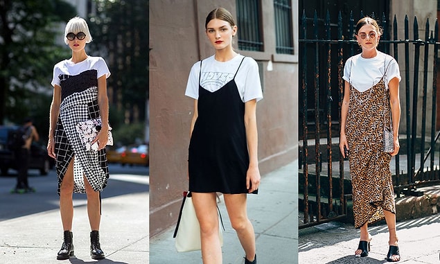 90’lı yılların en tanınan akımlarından elbise içine giyilen tişörtler, son devirde o kadar sık tercih ediliyor ki yine moda oldu desek yanılmış olmayız!