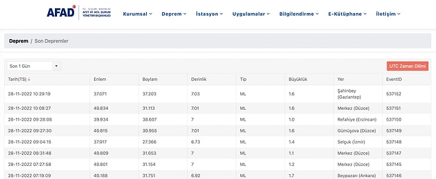 28 Kasım Pazartesi Zelzele Listesi