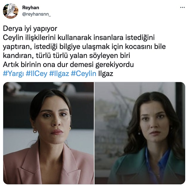 Dizide bir yandan Ilgaz ve Eren Serdar’ın mevtini araştırırken öbür yandan da Ceylin’in avukatlığını yaptığı arkadaşı nedeniyle Derya’yla ortalarındaki soğuk savaş yeni kısma damga vurdu.