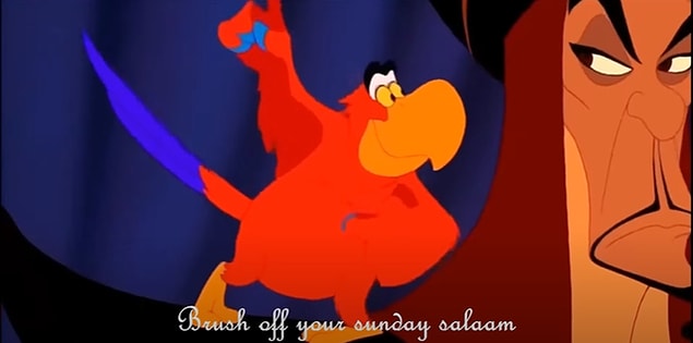 1. Aladdin (1992) sinemasında Prens Ali “Pazar gününüzü kutlarım.” diye bağırırken 2019 üretiminde bu replik “Cumanızı kutlarım.” olarak değiştirilmiştir.
