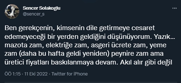 Üreticilerin artırımlarla nasıl zorlandığını anlattı.