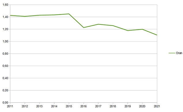 Bu grafikte TÜİK Gelir ve Ömür Şartları Araştırmasında 2011 yılında bu yana ortalama yıllık muadil hanehalkı kullanılabilir gelir seviyesinin aylık hali ve minimum fiyat oranı bulunuyor.