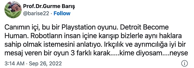 Neredeyse gerçekmiş üzere görünen bu kısa röportaj aslında 2018 yılında piyasaya sürülen Detroit: Become Human isimli bir oyuna ilişkin. Oyunda tıpkı Chloe üzere gelişmiş robotlar üzerinden insanlık nedir, ruh nedir üzere bahisler sorgulanıyor. Sadece kıssası ile değil, beşere düşündürdükleri ile de mutlaka talih verilmesi gereken bir oyun olduğu notunu da eklemeden geçmeyelim.