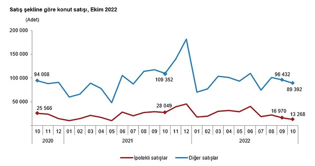 Türkiye genelinde başka konut satışları Ekim ayında bir evvelki yılın birebir ayına nazaran %18,3 azaldı. Toplam konut satışları içinde öteki satışların hissesi %87,1 olarak gerçekleşti. Ocak-Ekim periyodunda gerçekleşen öbür konut satışları ise bir evvelki yılın tıpkı periyoduna nazaran %4,7 artışla 917 bin 984 oldu.