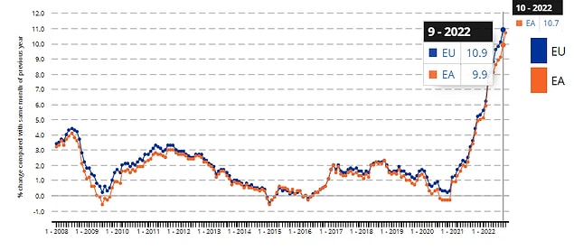 Kısaca Avrupa Birliği üyesi (EU) ülkelerin ve Euro kullanan ülkelerin (EA) enflasyon oranları mevcut.