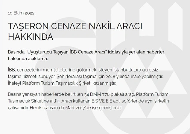 İstanbul Büyükşehir Belediyesi’nin (İBB) cenaze nakil aracında uyuşturucu bulunduğu tez edilince, İBB kelam konusu aracın ilişkin olduğu şirketi açıkladı. Şirket tanıdık çıkınca Yeni Şafak Gazetesi haberinde değişikliğe gitti.