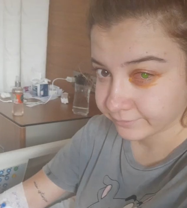Munise gün sonunda lenslerini çıkarmadan uyumaya karar verdi. Bunun hiçbir sorun yaratmayacağını düşündü ve sabah uyandığında gördüğü görünümle şok oldu. Gözünde büyük bir şişlik ve kızarıklık olduğunu gören Munise, soluğu en yakın hastanede aldı.